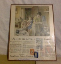 Vintage Sun Maid Raisin Sign. Advertising on Laminated Thin Wood. 1927