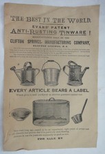 antique victorian CLIFTON SPRINGS MFG. ny TINWARE BROADSIDE evans' patent AD