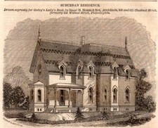 1870's ad Antique Suburban Residence Gothic House plan Issac H Hobbs Architect