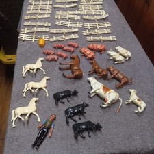 Vintage Plastic Toy Farm Lot - Fence, Animals & Farmer