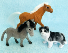 Flocked Vintage Horse Donkey & Dog Toy Figurine ~ Lot of 3