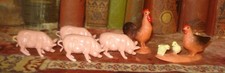 Vintage Toy Farm Animal Figures Lot PIGS, ROOSTER, HEN & CHICKS