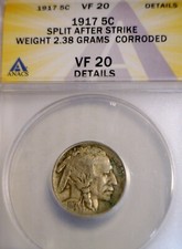 1917 ERROR ANACS VF20 SPLIT PLANCHET After Strike Buffalo Nickel Coin NR