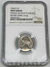 1966 NGC AU58 Split Defective Planchet Nickel Mint Error Awesome Eye Appeal