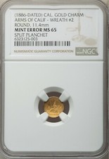 ERROR! 1886 Arms California Fractional Gold - Split Planchet - MS65 NGC Unique!