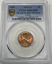 1964 USA Lincoln Cent Struck On Split Planchet PCGS Certified MS64 Red #C266