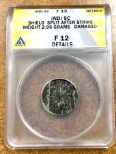 SHIELD NICKEL ERROR Obverse Half Split Planchet 2.95 Gram ANACS F12 details