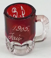 Antique 1918 Van Wert (Ohio) Fair Red Flash Glass Mug Cup - 2 1/4" Tall