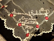 1898 antique OMAHA ne EXPOSITION EMBROIDERED HANKIE owned susannah rohrbough