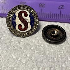 Antique Sterling WS & DBF Solidarity Labor Union Enamel Screwback Pin
