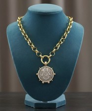 Gold Coin Lion Thaler VTG Necklace Antique Chain Silver German Portrait Crest