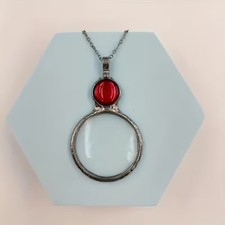 Red Gemstone Magnifying Glass Necklace Pendant Antique Style Chain Crystal New