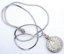 LIBERTY NICKEL 5 CENT ASSORTED DATES SILVER COLOR 19 INCH NECKLACE EBS3461/61523