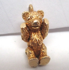 Vintage 10k Solid Yellow Gold Movable Teddy Bear Charm Pendant 1950