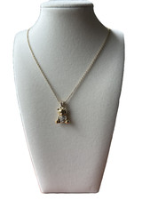 Vintage Teddy Bear w/Ribbon Gold Tone Pendant & Chain Necklace