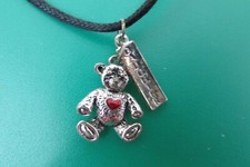 Vintage 16" black cord necklace w/DAUGHTER and Teddy Bear (red heart)