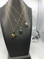 Lot of 3 Vintage Gold Tone Chain Necklaces w/ Bird Teddy Bear Egg Charm Pendants