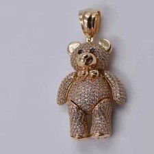 2 Ct Simulated Diamond TEDDY BEAR Pendant 14k Yellow Gold Plated