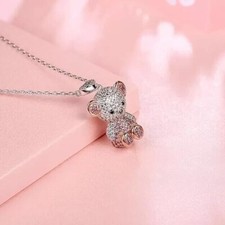 Teddy Pendant Free Chain 1.5Ct Round Cut Simulated Diamond 14K White Gold Plated
