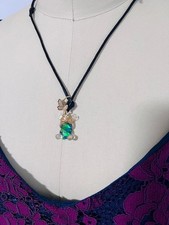 Faux Glass teddy bear, green stone pendant Y2K Style, Butterfly Necklace 90's