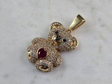 Womens Vintage Estate 14K Gold CZ Teddy Bear Heart Pendant 6.1g E6833