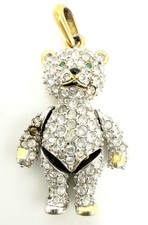 Vtg Juicy Couture Teddy Bear Goldtone Silvertone Rhinestone Pendant