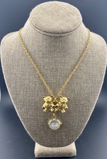 Victoria Lace Teddy Bear Watch Pendant/Brooch Necklace Vintage 29" Gold-Tone