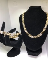 Retro Hugs and Kisses Teddy Bear Necklace and Bracelet X Heart Gold Filled Set