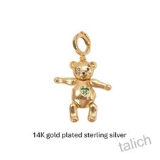 14K Gold Plated Sterling Silver CZ Teddy Bear Locket Charm Pendant Movable Arms