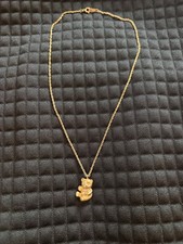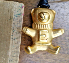 Rare Vintage ESCADA Teddy Bear Pendant Necklace Gold Big E