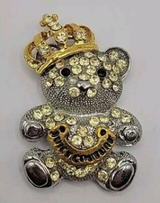 Vintage Articulated Crystal Teddy Bear Brooch Pendant Silver Gold Tone Moveable