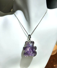 Natural Amethyst Teddy Bear Shaped Necklace Vintage Gift New