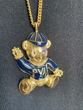 ABC 1993 All my Children Teddy bear pendant Navy Blue necklace -15" Gold Chain