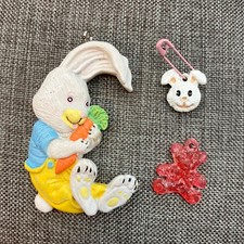 Easter Spring Pendant Lot Rabbit Bunny Head Pink Teddy Bear Carrot Retro Vintage