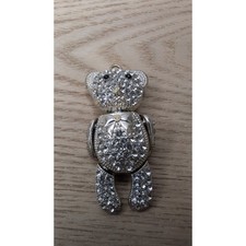 Vintage Articulated Crystal Teddy Bear Brooch Pendant Silver Tone Moveable