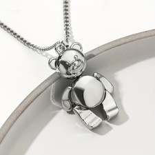 Teddy Bear Jewelry Vintage Silvery Joint Movable Charm Ted Pendant Necklace