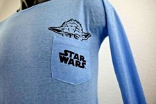 NEW Star Wars Long Sleeve Junior's Yoda Pocket Tee Blue Size M