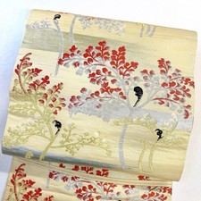 Nagoya Obi Antique Plant Pattern Ivy Kimono Silver Gold Thread Used Japan