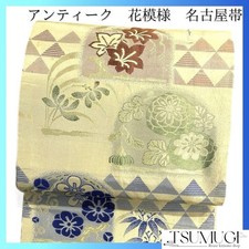 Nagoya Obi Silk Kimono Belt Antique Mizuhiki Chrysanthemum Clover Floral Japan