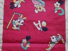 Antique Cotton Kimono Fabric Red Alphabet Rabbit Duck Bused Pattern Japan