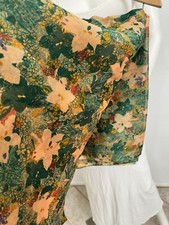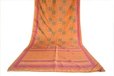 Antique Silk Saree Sari Fine Silk Organza Floral Motif Green Orange Yellow