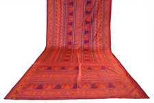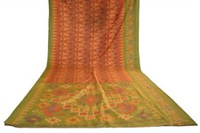 FNC Vintage Orange Sambalpuri Ikat Sarees Handwoven Art Silk Sari Fabric Antique