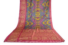 FNC Vintage Pink Sambalpuri Ikat Sarees Handwoven Art Silk Sari Fabric Antique