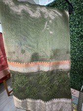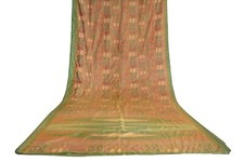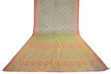 Green Silk Saree 5yd Antique Vintage, Pure Tissue, Embroidered