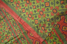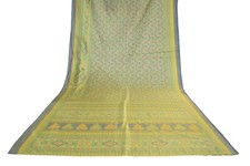 FNC Vintage Green Sambalpuri Ikat Sarees Handwoven Art Silk Sari Fabric Antique