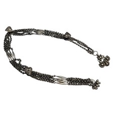 Antique Handmade Solid Silver KURTA Heart Buttons w/ Chain Indian / Tribal 59g