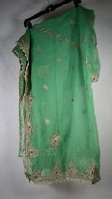 Antique Beads Gota Work Indian Cut Saree Sari Party Wear Dress Grass Green Gold