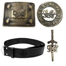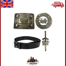 Complete Scottish Kilt Set TC Thistle Pin, Brooch, Leather Belt & Antique Buckle