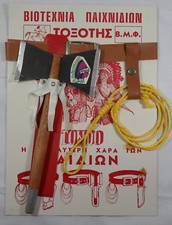 GREEK VTG 70's TOXOTIS CARNIVAL INDIAN DOUBLE AXE BELT COSTUME ACCESSORIES TOYS