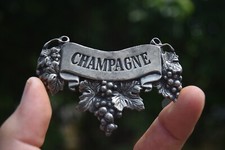 1960s CHAMPAGNE LIQUOR DECANTER LABEL CAST METAL BADGE SIGN FRENCH GRAPES FRUIT